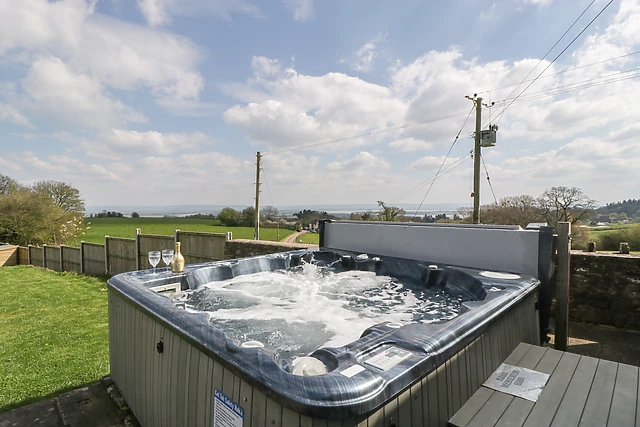 Downstairs is a lower-ground-floor play room/sitting room divided into two parts; at one end is a TV with a selection of games and DVDs as well as a pool table, ideal for keeping children entertained, and at the other end is additional seating next to a charming water feature, where you can enjoy a quiet moment, looking out onto the wonderful garden. Head out of the patio doors into the rear, enclosed garden, which has a large lawn and a patio with seating and your own private hot tub, where you can admire the far-reaching countryside and river views, while up a set of steps to the ground floor level brings you to an additional patio area with another seating area,w here you can enjoy a spot of alfresco dining.