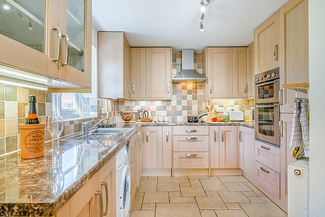Boasting a wonderfully vaulted ceiling, featuring exposed beams and trusses and French doors leading outside, this light and airy social space perfectly blends period charm with all your creature comforts. Lead the way into the contemporary and well-equipped kitchen to rustle up something delicious as you enjoy beautiful green views across the gardens.
