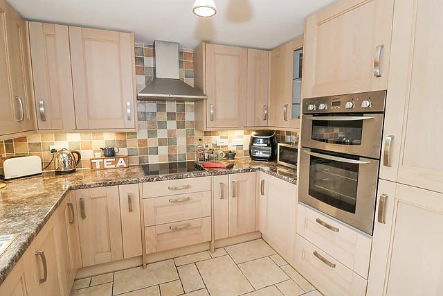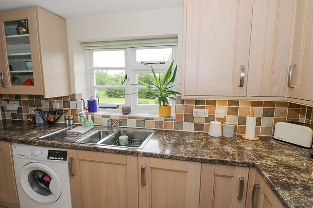 Here, you will find feature ceiling beams, a Smart TV, tasteful soft furnishings, attractive French doors leading outside and a huge corner sofa, which all add up to create a really chilled-out atmosphere and is somewhere you can imagine spending a lot of time. Step into the kitchen which is equipped with everything that’s needed to produce quality food for the holiday party and when it’s time to serve up, the dining area is the perfect spot for enjoying long, leisurely meals together.
