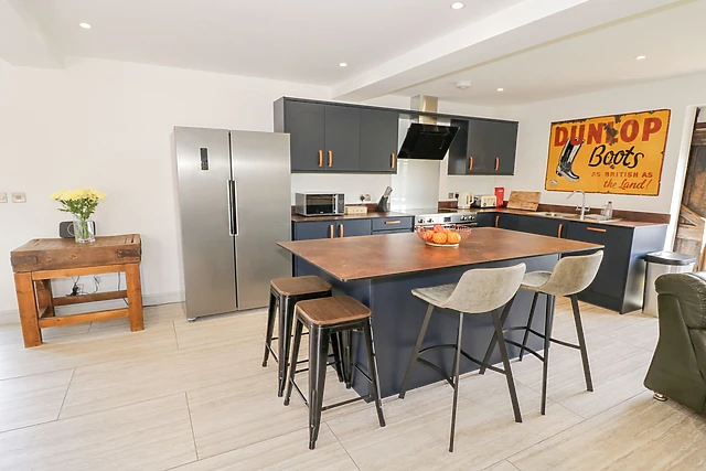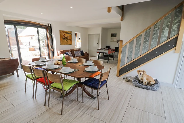 The open-plan living area offers a light and airy feel, with plenty of windows offering an outlook to the surrounding countryside, a seating area with ample seating, a football table for those rainy days and a well-appointed kitchen from which home-cooking can be enjoyed. Escape upstairs to discover the bedrooms, with the master housing a super-king-size bed with Smart TV, a king-size with en-suite shower, a double, and a triple bunk with double and single above.