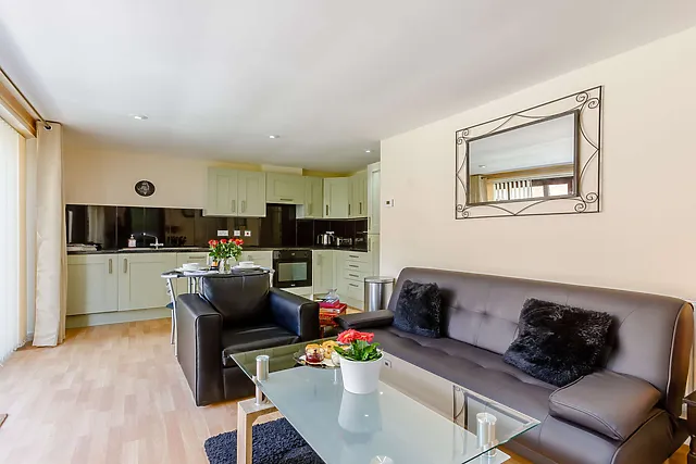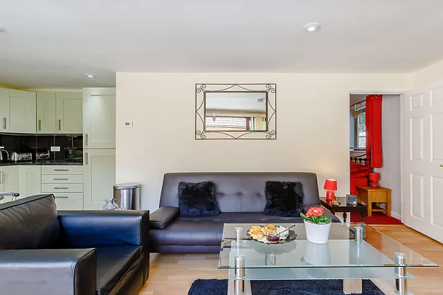 The modern kitchen is fully equipped, and the lounge area is a cosy spot to unwind. A double bedroom with an en-suite shower room promises restful nights.