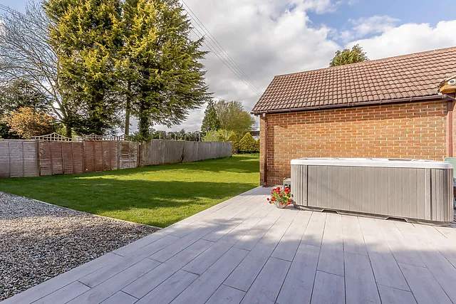 Yes, the accommodation includes a spacious private hot tub, providing the perfect setting for relaxation after a day of exploring the surrounding countryside.