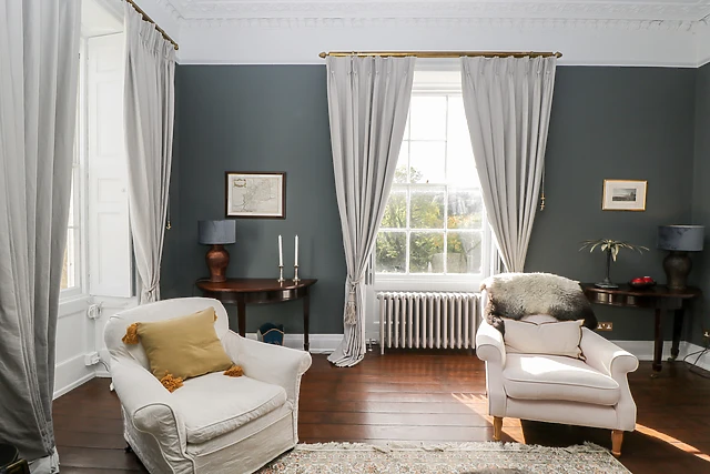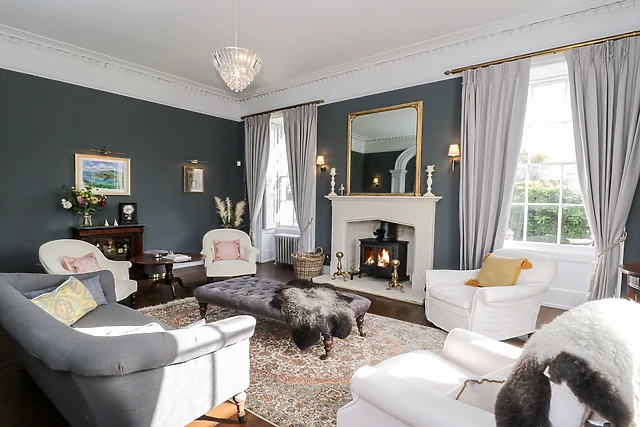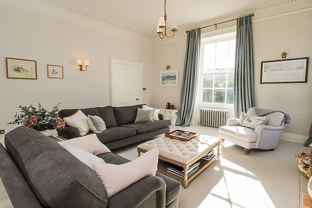 A private driveway invites you in, where you can unload your bags near the door. Inside, a large entrance hall meets you, where a snug with a woodburning stove rests on your left and a sitting room with another toasty woodburning stove rests on the right.