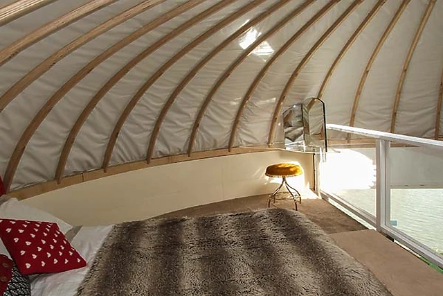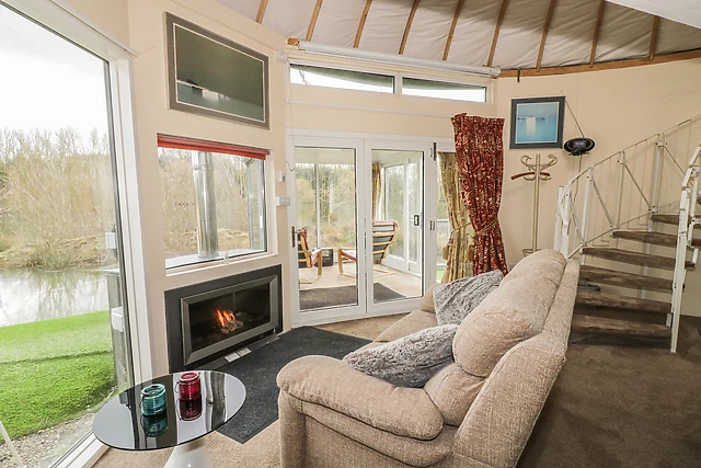 A 20 foot yurt with hot tub set in a secluded and idyllic location on its own island, overlooking the owner's fishing lake on the edge of the village of Beckford, close to the border with Gloucester, in the Cotswolds Area of Outstanding Natural Beauty. One of four on this peaceful site, yet set apart on a separate lake, this unique yurt is perfect for a special romantic break in an Area of Outstanding Natural Beauty.