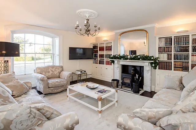 This is a luxurious Grade II listed country home, offering spacious and elegant living areas, multiple bedrooms, and a range of entertainment facilities, set within picturesque grounds.
