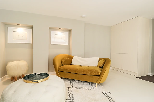 Retire to the sumptuous king-size bedroom under the eaves, complete with an en-suite bathroom featuring a Japanese plunge bath and walk-in shower.