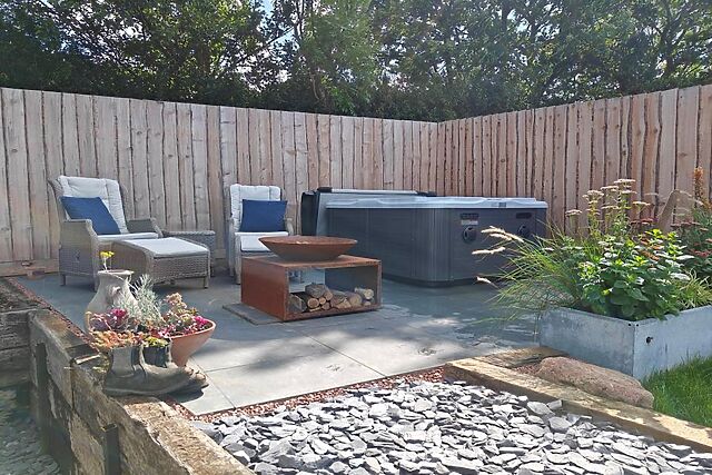 Relax and unwind in your private garden, a private hot tub thats perfect for two, with table and chairs for summer dining, along with a fire pit that’s perfect for toasting marshmallows and stargazing.