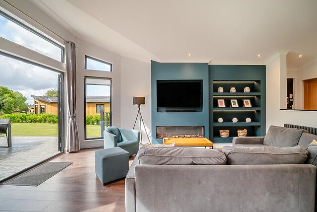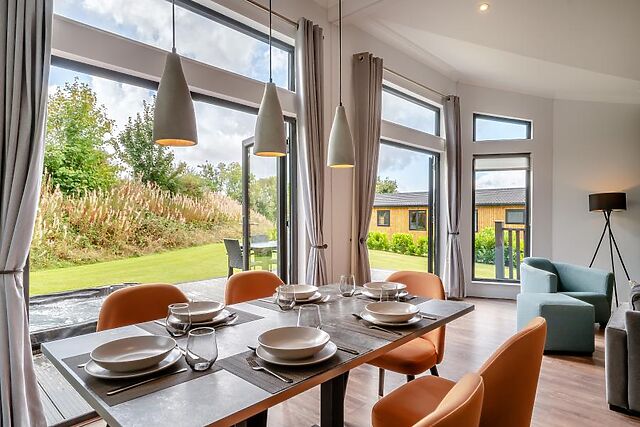 Step inside this thoughtfully designed lodge into a bright and airy open-plan living area. This space features a beautifully appointed kitchen with a stylish island breakfast bar, and a welcoming dining area perfect for sharing memorable meals.