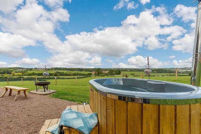 Yes, the accommodation boasts a wood-fired hot tub, offering a luxurious and relaxing experience amidst the beautiful countryside views.
