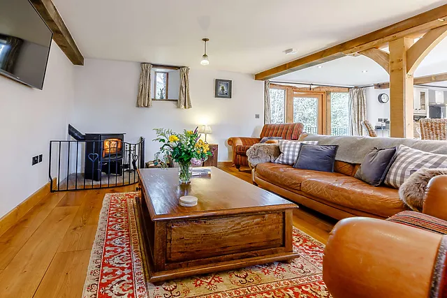 Indulge in the comfort of the open-plan living space, complete with a cosy woodburner for those cooler evenings.