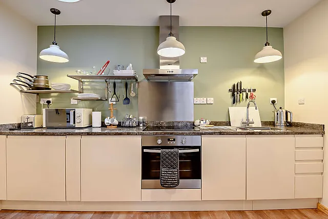 Yes, the property is pet-friendly, welcoming up to two dogs. It provides a secure garden for pets to roam freely, ensuring a comfortable stay for both guests and their furry friends.