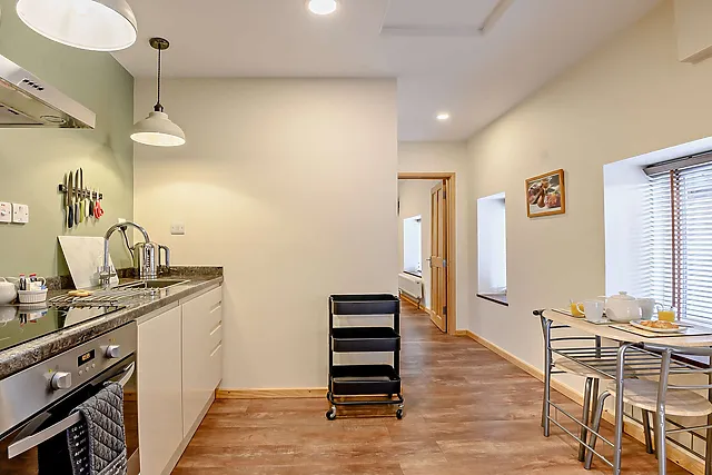 Accommodating two guests, the barn boasts a king-size bedroom, a contemporary kitchen, and a cosy lounge perfect for intimate evenings.