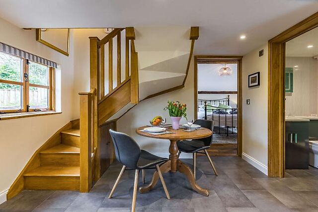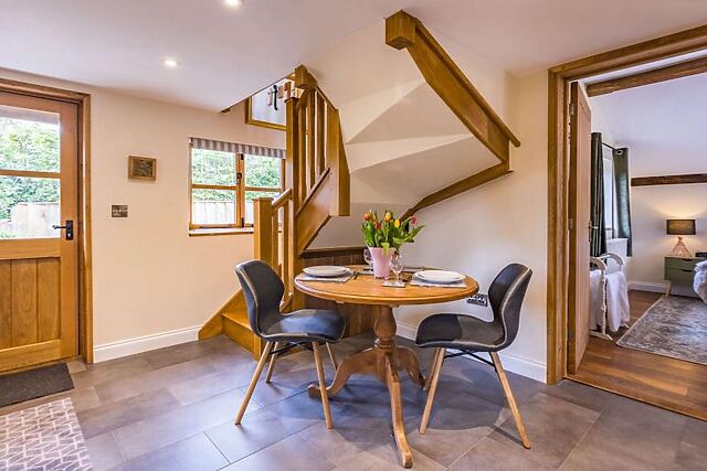 Step outside to find a private hot tub, where you can unwind under the stars, enveloped by the serene Herefordshire countryside. Enjoy al fresco dining in the courtyard or a morning coffee on the bench.