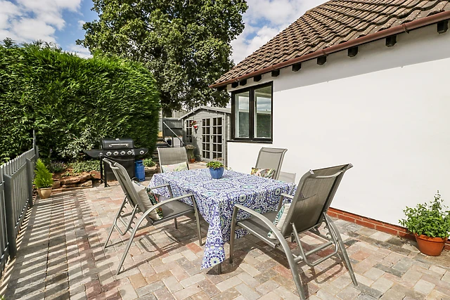 The property boasts a rear patio with outdoor furniture and a summerhouse, offering a splendid setting for alfresco dining and relaxation amidst the beautiful countryside views.