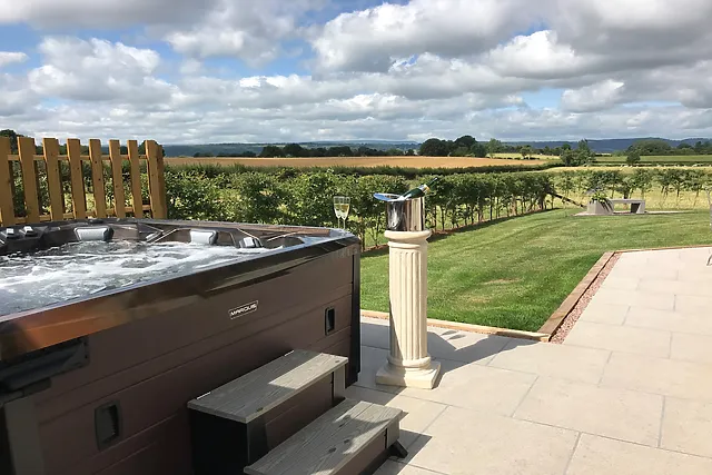 Yes, the property features a large, private hot tub set to the side of the beautifully kept gardens. It offers a peaceful spot to relax and enjoy the company of your group under the stars, with stunning views of the surrounding countryside.