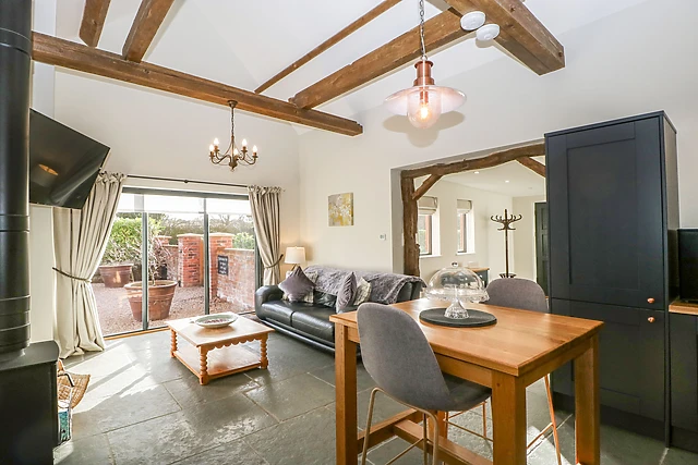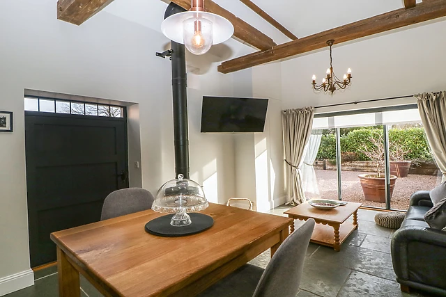 Entering Beechcroft, which is the name of the owner's home, you will find a large gravel driveway with assigned private parking for one car; the owner has other holiday homes on this estate that each have a designated car parking space. Entering the property into the open-plan kitchen/living/dining room, you will find a great blend of original features, such as vaulted ceilings and wooden beams, complemented by contemporary touches, like the underfloor heating, skylight and kitchen units.