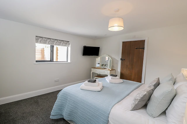 The carpeted king-size bedroom has wonderful solid oak doors, lots of storage space, a Smart TV with Netflix and an en-suite bathroom with a walk-in shower, where you can prepare for each day. Outside, the enclosed patio has a table and seating for two, plus a private hot tub, so you can indulge and enjoy the warmth of the water at the end of a long day of adventure.