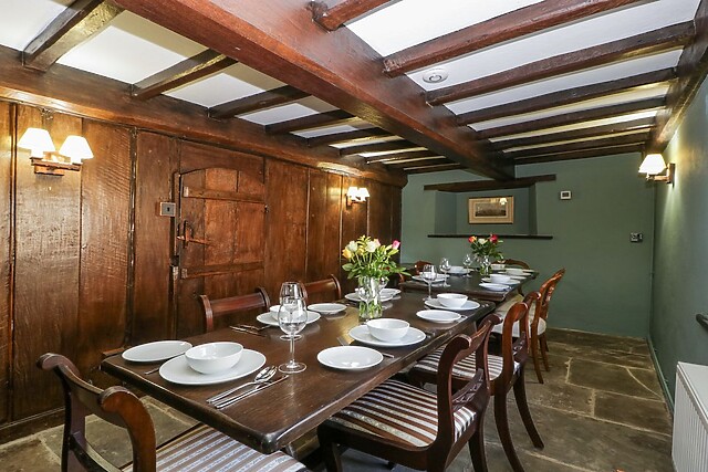 Step into history and follow the exposed wooden beams through this stunning, stone-built property filled with original features. Whip up a scrumptious supper in the kitchen equipped with an electric hob and oven, kettle, toaster, and fridge – also utilising the freezer in the utility – and enjoy a family meal at the grand, slick wooden dining table in the dining room, accompanied by a window-framed picturesque, countryside.