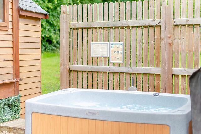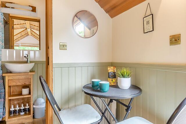 The cabin is insulated with an electric heater making it cosy all year round including the chilly winter nights. Step outside on to your private patio area with table and chairs overlooking the vast amount of wildlife and mature shrubs.