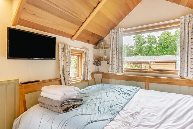 If you prefer a film or series, this cabin has a TV and DVD player at the end of the bed. The en-suite has a shower, WC, and complimentary toiletries.