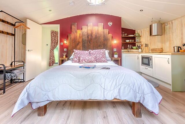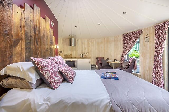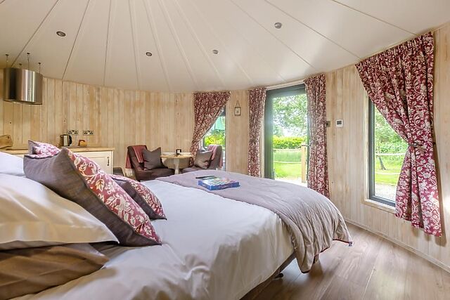 Quirky round-house style cabin for two located within a secluded glampsite in rural Leicestershire. Nestled on the outskirts of the quiet village of Kirkby Mallory, you are only a 500 metre walk to a bar and restaurant, as well as a village shop where you can stock up on those essentials.