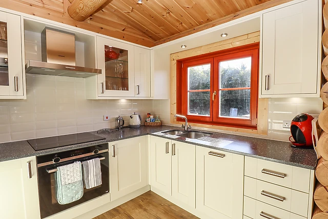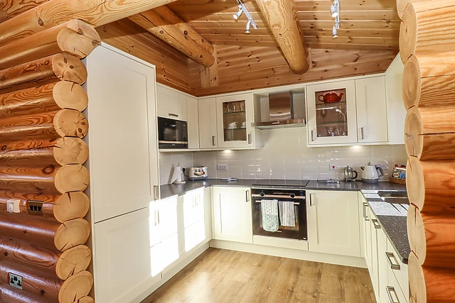 Inside, you'll find all the comforts of home, with a well-equipped kitchen and a warm, inviting living area. The lodge's rustic charm and modern amenities blend seamlessly to provide a relaxing atmosphere.