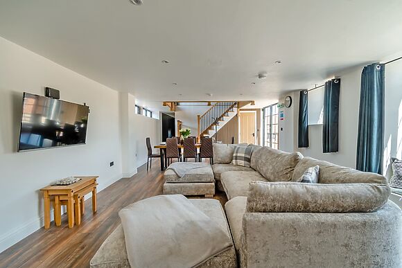 Stable View Barn is a 4-bedroom luxury barn conversion on a Warwickshire farm sleeping 8. Private hot tub, games room, cinema snug, EV charging and enclosed garden. Rated 4.7/5. Dogs welcome free. Warwick Castle and Kenilworth both under 15 miles away.