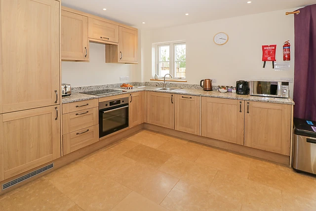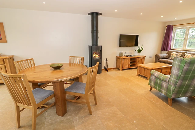 Upon entering Lavender Cottage, you will be greeted by a spacious open-plan area, thoughtfully designed to cater to your every need. The kitchen is fully equipped, ready for you to prepare delicious meals, which can be enjoyed at the dining table, creating a perfect setting for memorable meals.