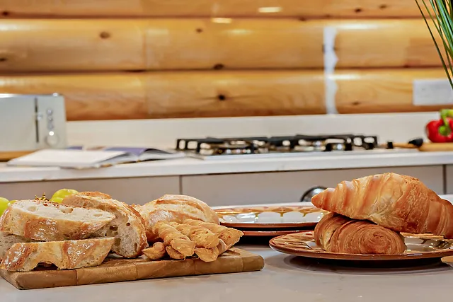 A wood burner is available, with the first basket of logs included, perfect for creating a cosy atmosphere.