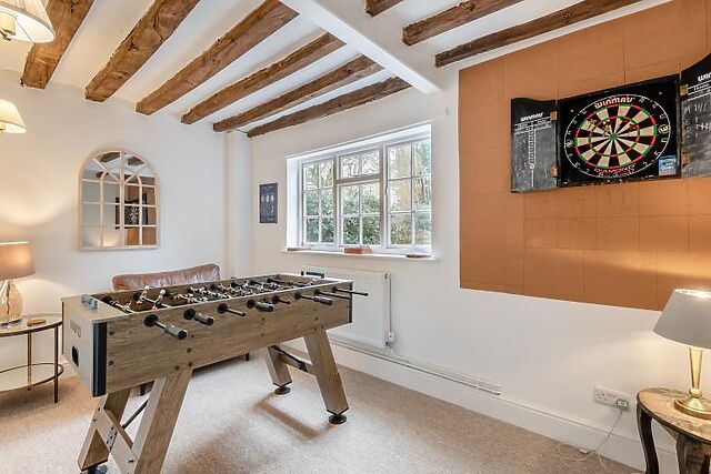 Evenings promise fun and laughter—watch movies in the cosy lounge, challenge friends to table football or darts in the games room, or unwind in one of the four beautiful double bedrooms, including one ground-floor en-suite for easy accessibility and two upstairs with en-suite shower rooms. Treat yourself to the ultimate relaxation in the luxurious family bathroom featuring a roll-top bath.