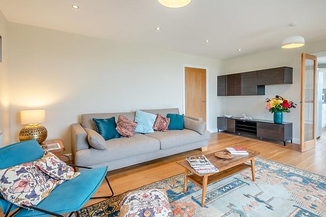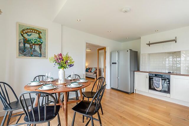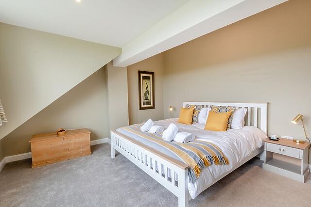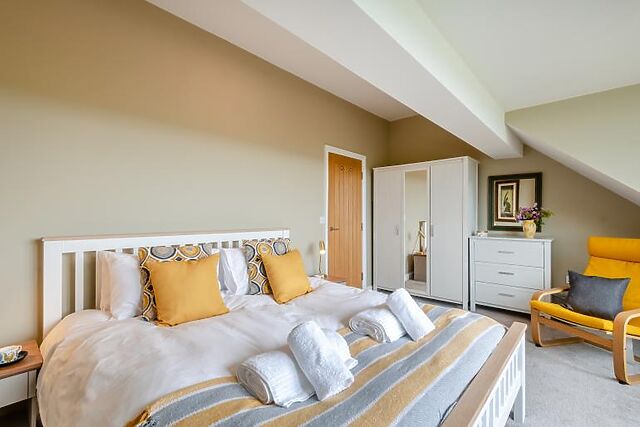 The accommodation includes a super-king-size bedroom, a double bedroom, and a bunk bedroom, making it ideal for families or groups of friends.