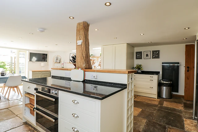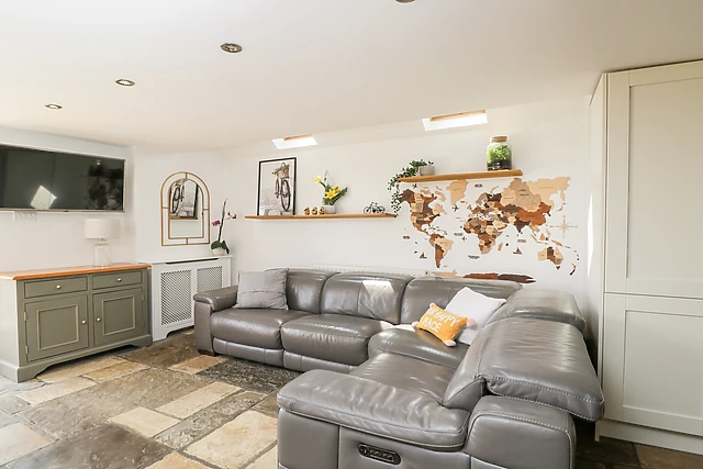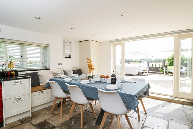 With the choice of a variety of children’s equipment, a quaint outdoor sitting area with cinema screen and a hot tub, you’re sure to want to optimise your time out here. When the evening grows chilly, escape back inside to the characterful sitting room, complete with Smart TV and a woodburning stove, perfect for lighting during winter months and cosying up in front of a family favourite.