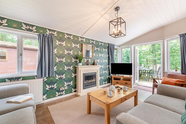 A fully equipped kitchen ensures it’s easy to prepare everything from morning coffee to a family dinner. The lodge includes one double bedroom with an en-suite shower room, two cosy twin bedrooms, and a family bathroom with a bath and overhead shower, making it ideal for families or groups.