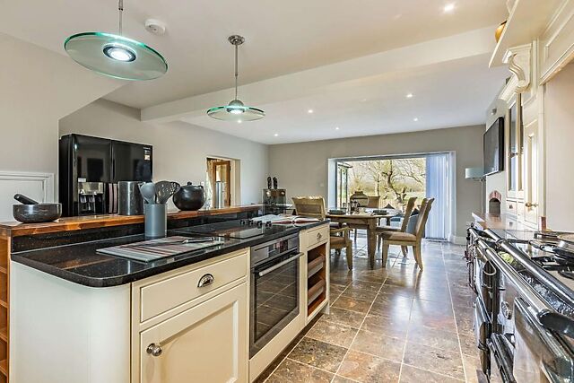Inside, the open-plan lounge with a wood burner stove and smart TVs in select rooms adds a touch of luxury to your stay. The kitchen, complete with an AGA oven, is a foodie's delight, while the spacious dining area with folding doors opens up to the garden, seamlessly blending indoor and outdoor living.