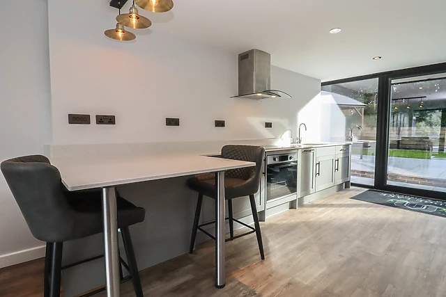 This space comprises of a well-equipped kitchen, dining area and sitting area; the perfect place to spend quality time with your loved one, share stories and create memories. Allow your other half to rustle up a delicious meal before taking the evening outdoors, enjoying either the private front gravelled area with a picnic bench, or the enclosed rear garden with furniture, fire pit and hot tub; ideal for snuggling up with your partner and stargazing.