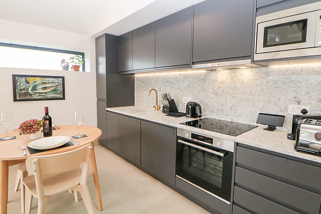 Relax in the open-plan living space, complete with a woodburning stove, or indulge in the contemporary kitchen and dining area.