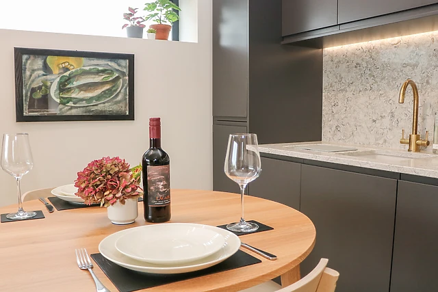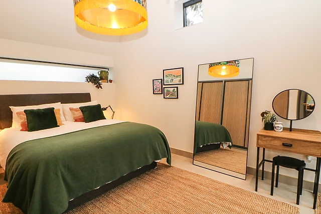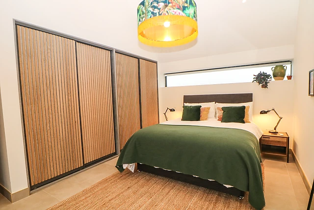 The plush king-size bedroom promises restful nights, while the sleek shower room adds a touch of elegance to your stay.