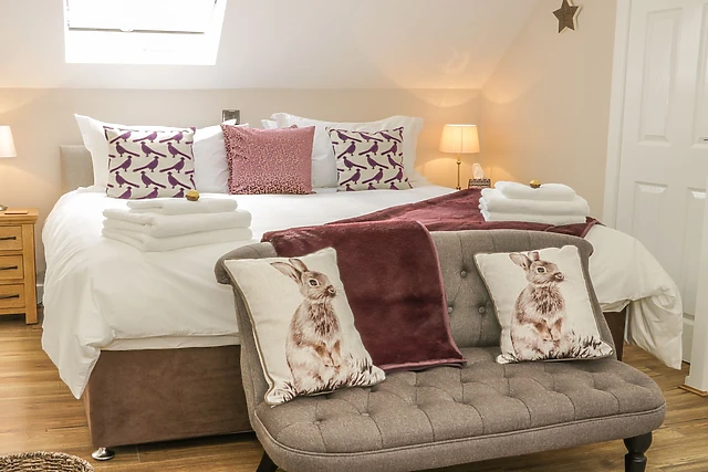 The second floor is equally as desirable, presenting a super-king-size bedroom, this time with a zip/link option for flexibility, a skylight window to welcome in the natural light and an en-suite cloakroom for convenience. Outdoors you will discover a lovely, pet-friendly courtyard, resting to the rear, and a characterful outbuilding, almost a 'cave', featuring a luxury hot tub; look forward to returning here after a long day.