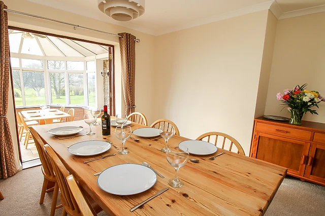The ground floor has a large kitchen with breakfast bar, amply sized and fitted out to cater for your full complement of guests. The dining room stretches into the conservatory and has seating facilities to match your party size.