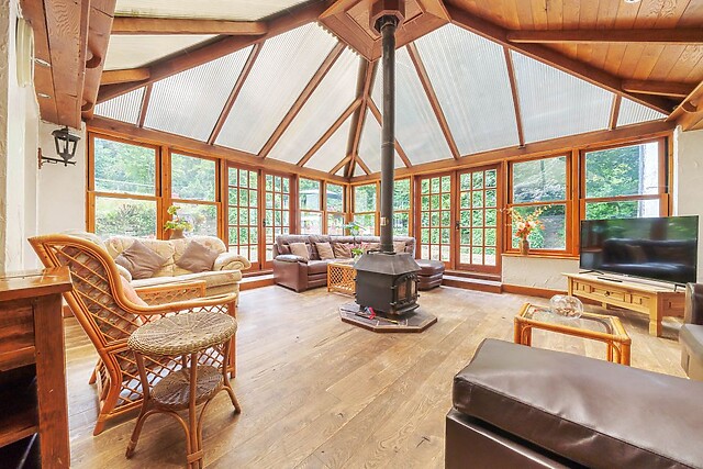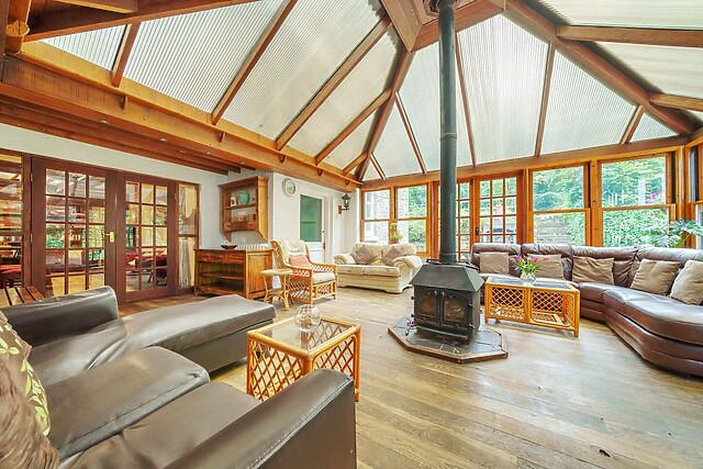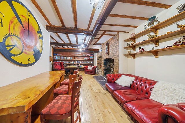 The galleried reception/dining room with sash windows and woodburning stove seats 26 people and the main sitting room has an inglenook fireplace and a woodburning stove, ideal for relaxing in front of a family film. But that is not all!