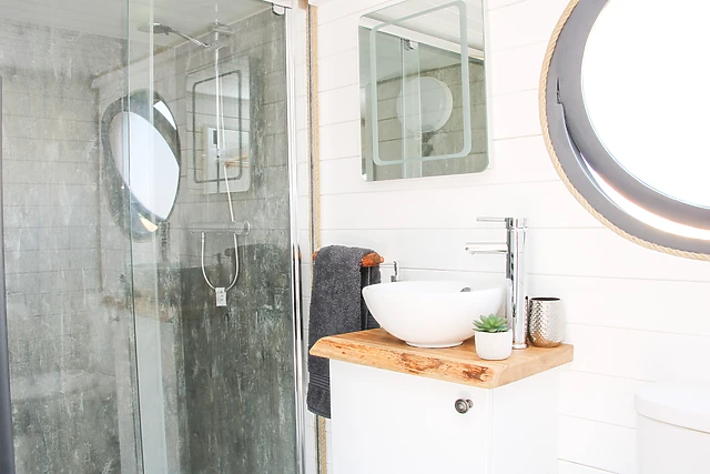 After exploring the rural walks, refresh in the sleek walk-in shower before ascending the rustic spiral staircase to the mezzanine king-size bedroom. For additional guests, the sitting area's sofa transforms into a double bed, ensuring a restful night for up to three people.