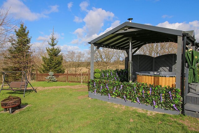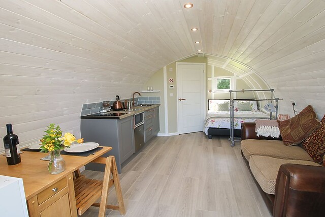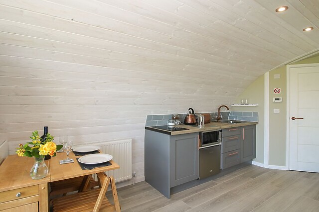 Enjoy ultimate relaxation in your own private hot tub, perfect for unwinding after a day of exploring or simply soaking in the peaceful surroundings. Be welcomed into the open-plan living space, where you can snuggle up on the sofa bed and watch your favourite series, or cook up storm in the kitchenette, ready to savour a romantic meal at the dining table for two.