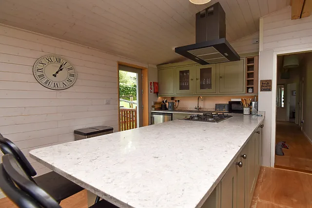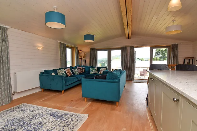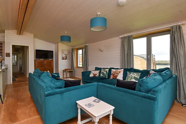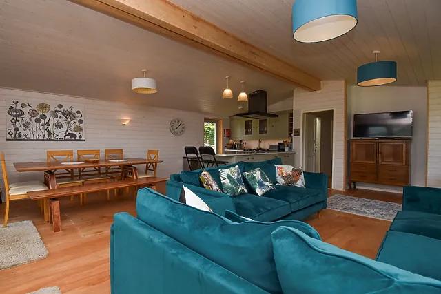 The lodge boasts a sociable open-plan living area, complete with a well-equipped kitchen for home-cooked meals.