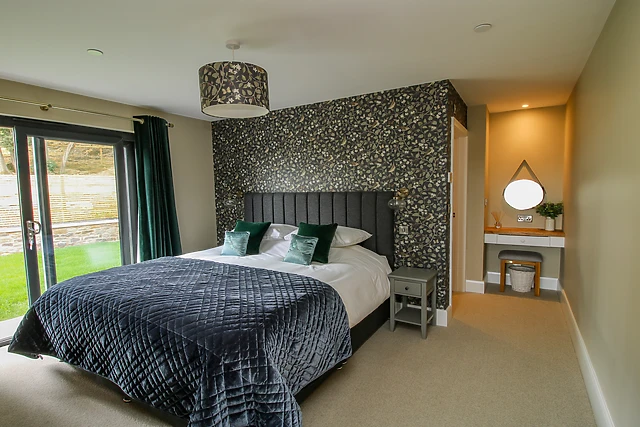 The serene setting and luxurious amenities, including a hot tub and sauna, make it a romantic haven for couples. Nearby, explore Montgomery Castle or enjoy a vineyard visit at Kerry Vale, adding a touch of romance to your stay.