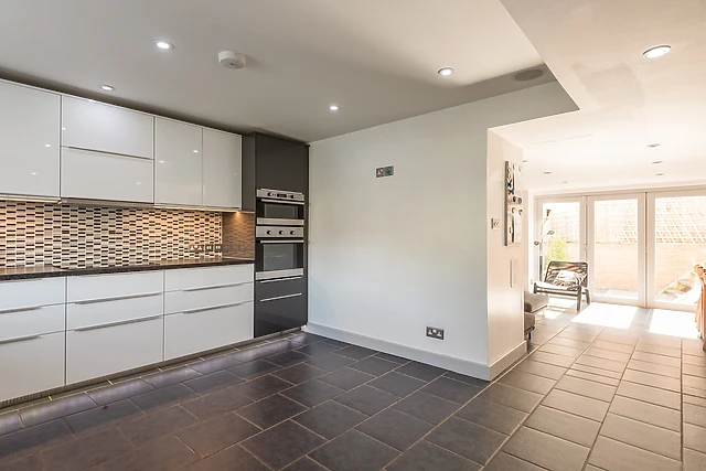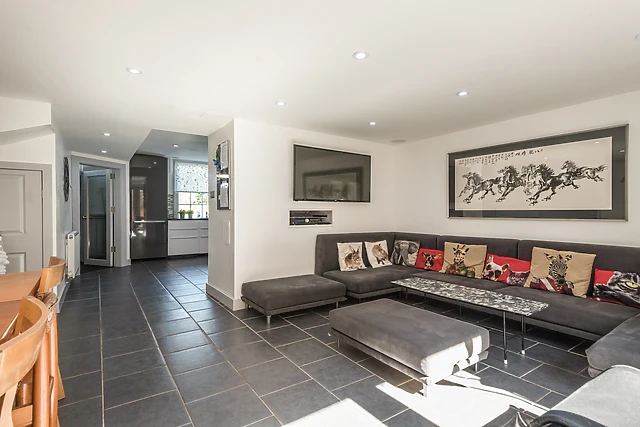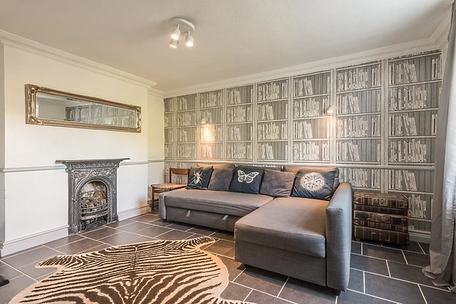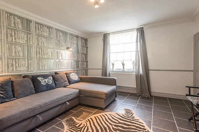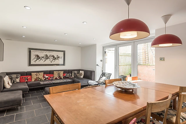 Large, glazed bi-fold doors lead onto a small, rear garden area. A second sitting room, also equipped with a TV, a non-working feature fireplace and a double sofa bed, provides a snug area to sit and chill with a book, or a further ground floor bedroom.