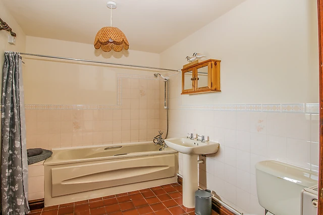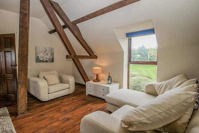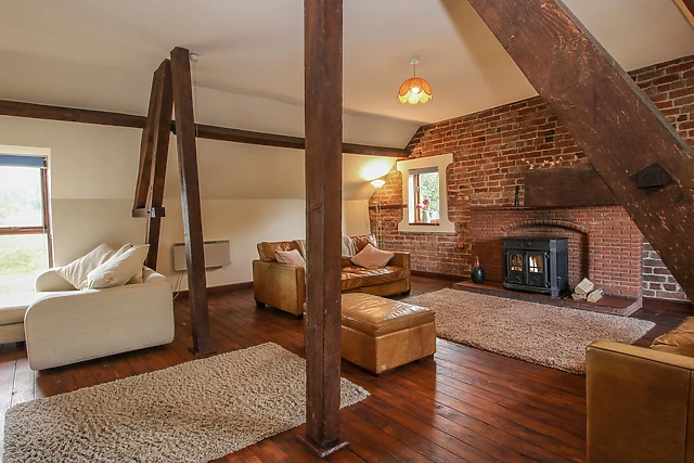The barn boasts a ground-floor bedroom for easy accessibility and includes two bathrooms, ensuring convenience for all guests.