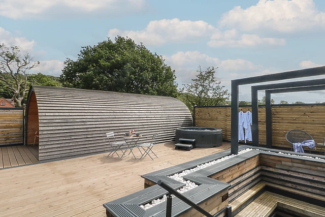 Savour your meal outside, where spacious decking awaits, complete with comfortable furniture for dining alfresco, and a delightful hot tub where you can soak away your cares beneath a canopy of stars. The highlight of your stay will undoubtedly be the sunken fire pit, where you can gather around with your loved ones, roasting marshmallows and sharing stories as the flames cast a warm, inviting glow on a crisp evening.