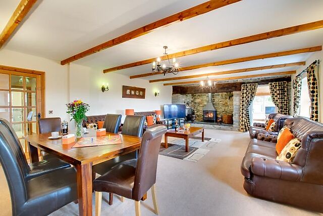 On the ground floor, you'll find a welcoming open-plan lounge/diner with a wood burner set in a beautiful stone fireplace.