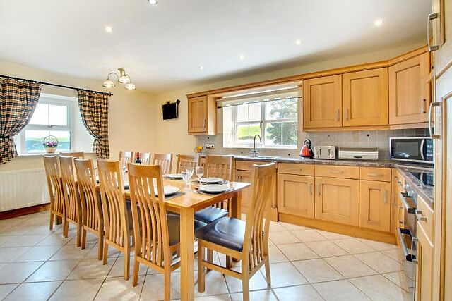 On the ground floor, you'll find a welcoming open-plan lounge/diner with a wood burner set in a beautiful stone fireplace. The cosy sunroom offers gorgeous views, while the well-proportioned kitchen provides ample space for socialising.