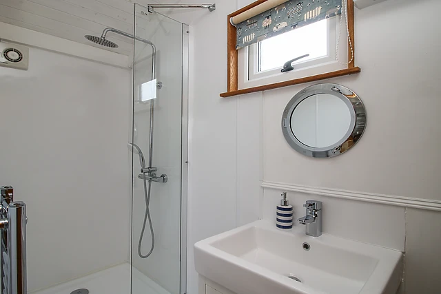 Elsewhere on the first floor is the shower room. But the cabin’s best features are all located outdoors, where the patio area will keep guests entertained, particularly in summer evenings.